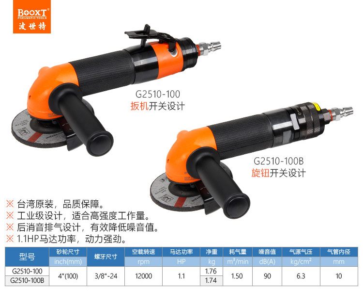 東莞市強(qiáng)勁五金工具有限公司提供臺(tái)灣BOOXT波世特品牌氣動(dòng)工具,歐洲款風(fēng)動(dòng)角磨機(jī)G2510-100B廠家直銷(xiāo),首件享特價(jià)。咨詢(xún)熱線:4008301980