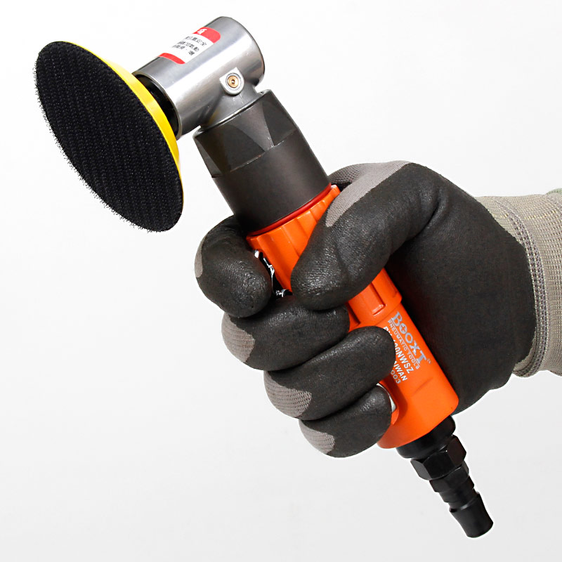 1.帶偏心式,裝砂紙打磨出來的效果是“霧”狀,帶細(xì)小亂絲的小紋路,適合后工藝需要做噴砂、烤漆,增加附著力。(標(biāo)配一般為3mm偏擺,可選配1.5mm,0.7mm偏擺度)