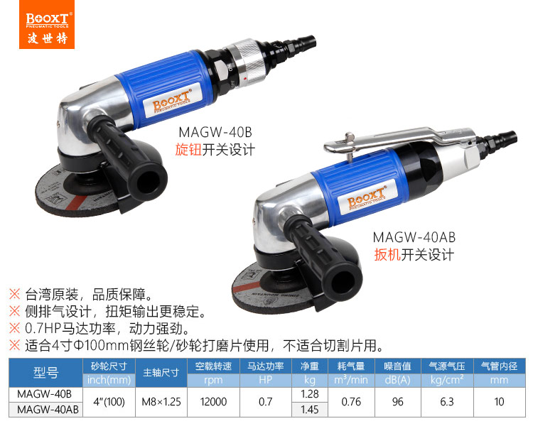 東莞市強勁五金工具有限公司提供臺灣BOOXT波世特品牌氣動工具,日系風(fēng)動角磨機MAGW-40AB廠家直銷,首件享特價。咨詢熱線:4008301980