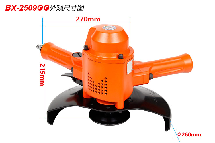 • 產(chǎn)品參數(shù): 砂輪尺寸:230mm(9寸) 馬達(dá)功率:2.984KW (4.0HP) 空載轉(zhuǎn)速:6000rpm 耗 氣 量:2.0m3/min 全 長:270mm 重 量:5.68kg 【工業(yè)型/大功率】
