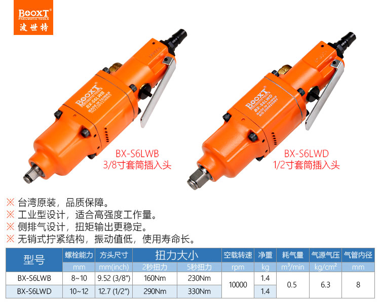 東莞市強(qiáng)勁五金工具有限公司提供臺灣BOOXT波世特品牌氣動工具,直柄氣動扳手BX-S6LWD廠家直銷,首件享特價。咨詢熱線:4008301980