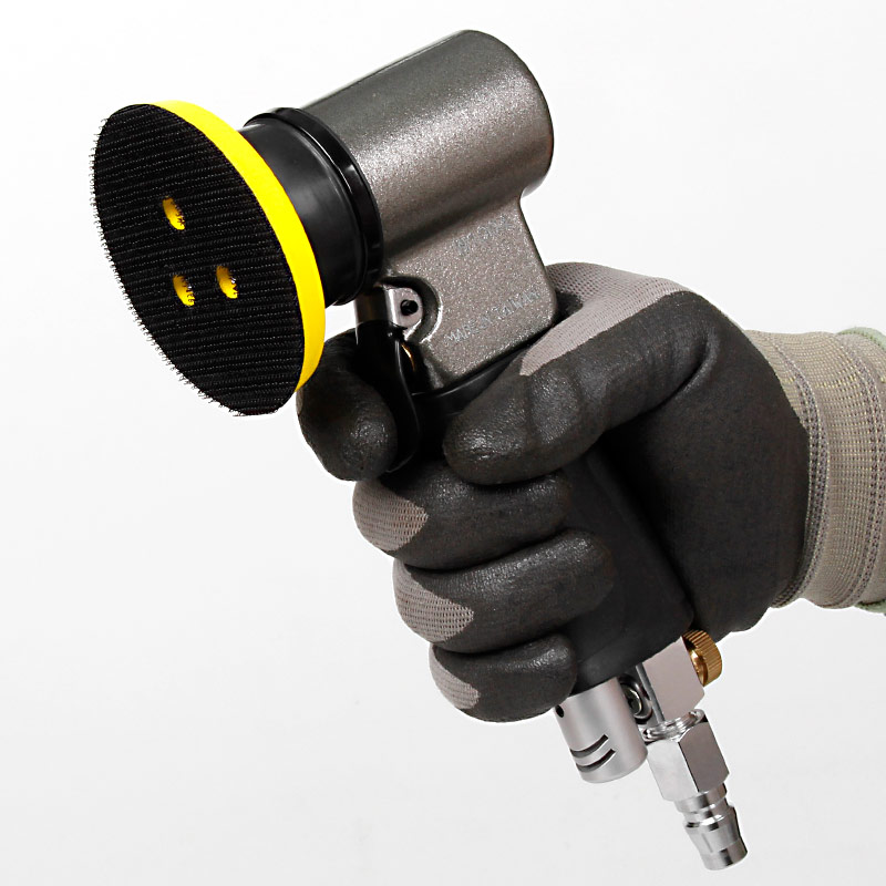 1.帶偏心式,裝砂紙打磨出來的效果是“霧”狀,帶細(xì)小亂絲的小紋路,適合后工藝需要做噴砂、烤漆,增加附著力。(標(biāo)配一般為3mm偏擺,可選配1.5mm,0.75mm偏擺度)